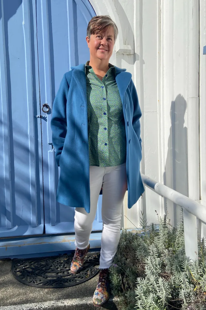 Tailored wool longer length coat. Fully lined with side pockets. Designed and made in New Zealand.