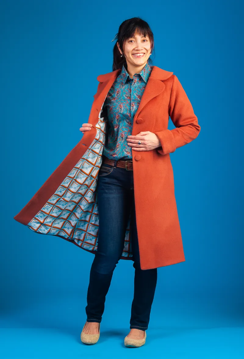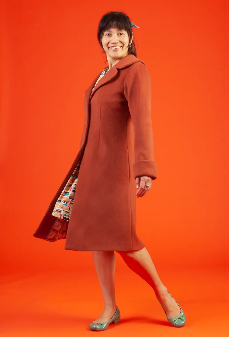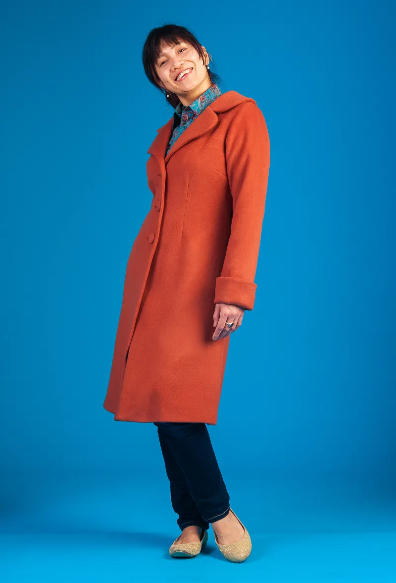 Tailored wool longer length coat. Fully lined with side pockets. Designed and made in New Zealand.